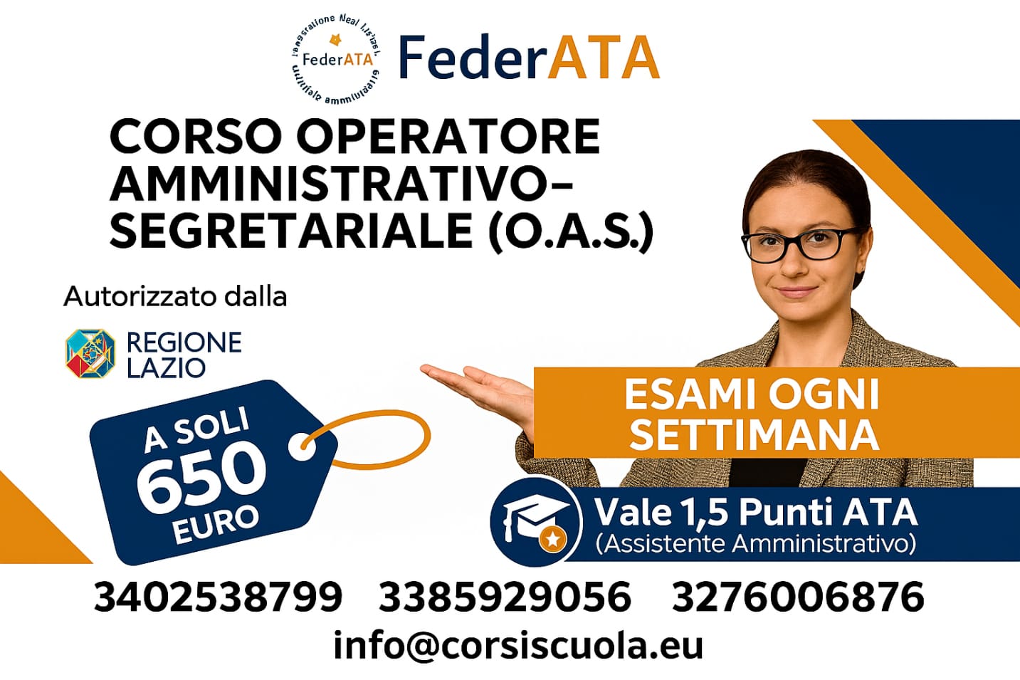 FederATA stipula una convenzione con ente accreditato in regione Lazio per conseguire l’attestato di qualifica professionale di Operatore Amministrativo-Segretariale autorizzato dalla Regione Lazio -